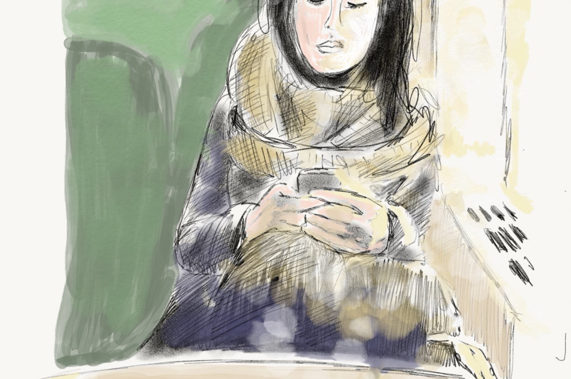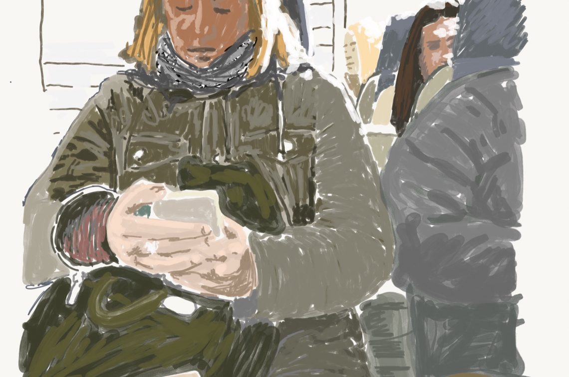 On the way home, carrying a lot on her shoulders. The whole package, actually. Checking messages. Checking on the kids. And her husband. Constantly in The Situation Room. Fleas in Kindergarten? Okay, it’s Defcon 5. Roger that, over and out.