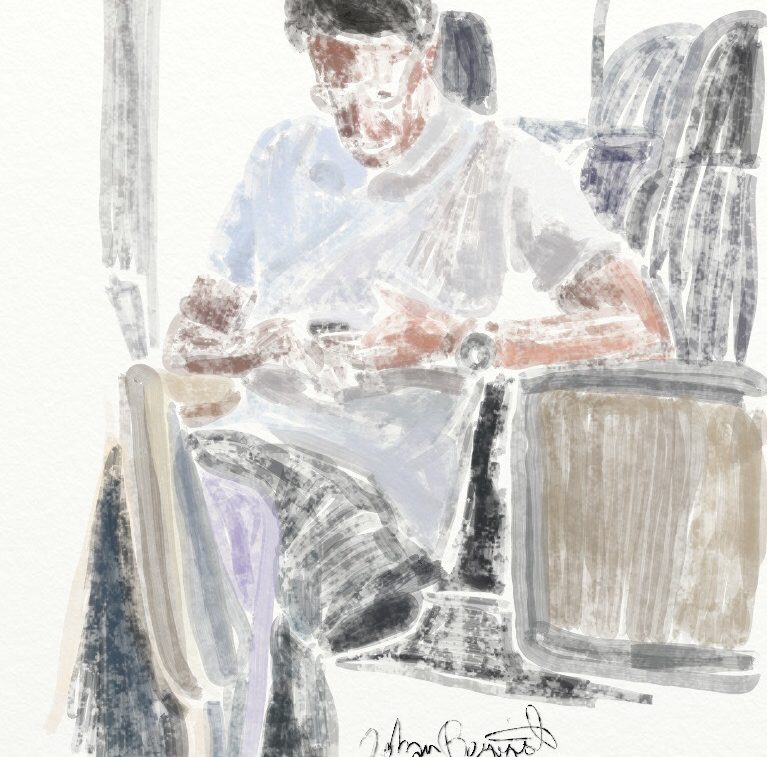 Like the mural paintings in Pompeji, this thoughtful commuter represents the everlasting values in our ever-changing community. But still, living under the volcano.